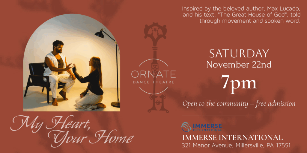 Their next outreach performance is coming up on Saturday, November 22 at 7 PM at Immerse International in Millersville, where they will minister through My Heart, Your Home. I can’t encourage you enough… come, be inspired, and be drawn into the presence of Jesus.