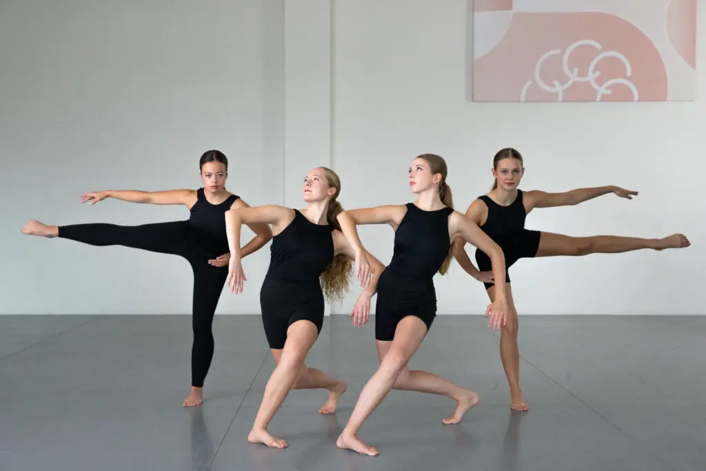 Modern 3 is an intermediate class building off of previous modern technique and challenging the body to take risks and be creative. Class is rooted in ballet technique, but with the freedom of movement and expression. Class includes learning how to initiate movement through the breath and use of the spine; contract/release, twists, and tilts. Class warm-up will work through parallel vs. turn-out position, core initiation, use of the floor, and flexibility and strength building through yoga and Pilates influences. Center warm-up and across the floor will consist of runs, jumps, turns, swinging movements, and floor work such as fall/recovery, rolls, slides, and intermediate level weight-bearing inversions. Students will learn improvisational techniques, beginner partnering, dynamic shifts in movement, and how to use the body to portray emotion. Class influences come from modern dance techniques such as Limon, Horton, and Cunningham. The class will learn intermediate modern choreography varying from release technique, contemporary dance, quirky gesture phrases, and movement with difficult physicality.