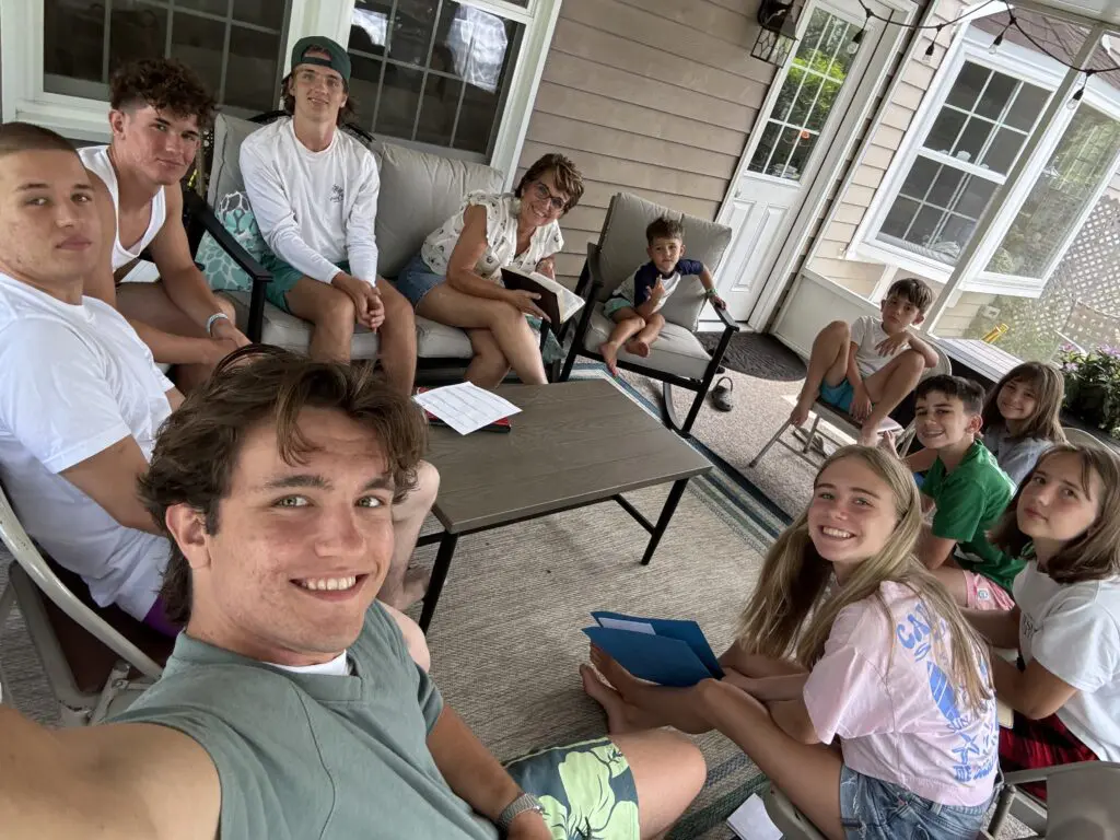 The week was full of other adventures too, beginning with morning devotions and journaling, mini golf, a Phillies game, a trip to Refreshing Mountain, an exquisite dinner prepared by our grandson Jeremiah who is a chef, an epic water slide in our backyard, and we wrapped it all up with a day at Hershey Park! Oh, and let’s not forget Freddy the Teddy, who made surprise appearances throughout the week… even from the rooftop! It was a time of cousin bonding, basement sleepovers, endless laughter, and sweet memory-making!