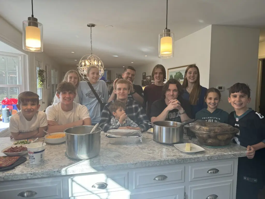 And our family was at our house for a Birthday Celebration for three birthdays! It filled this grandma’s heart! Here is a photo of all our grands with our son Aaron, who fits in so well! LOL! He is such a fun uncle! And of course, the Eagles game was the entertainment for these crazy Eagles fans! LOL!