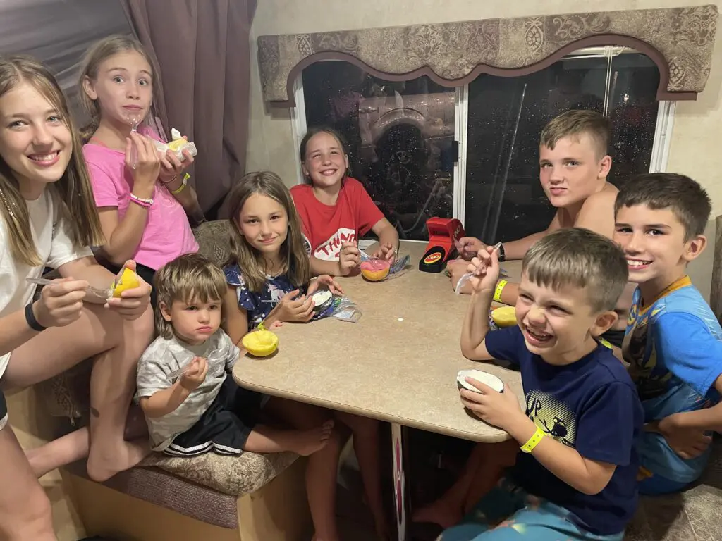 Last weekend we had 8 out of 11 grands here the whole weekend, and 1 that came for a visit. We had so much fun!! They had a blast…and Dave is still adjusting. LOL! What a guy!!