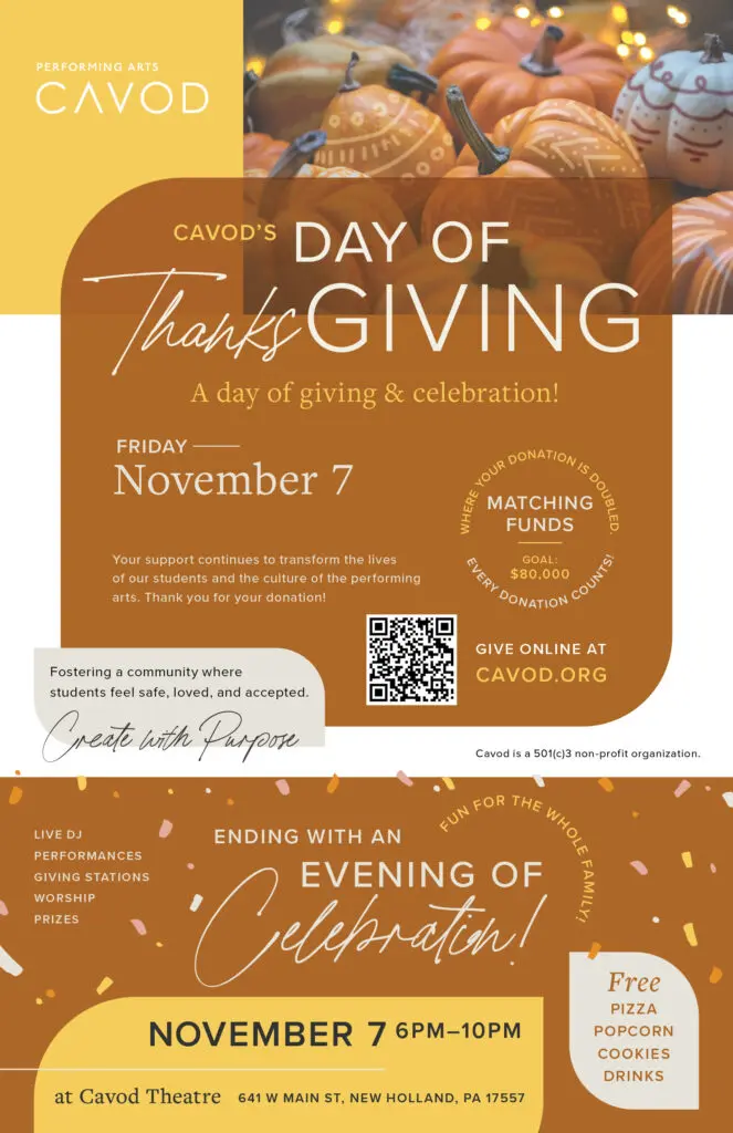 In addition to all of this, we are thrilled to be hosting another Day of ThanksGIVING on Friday, November 7th! This is a special day when we come together to raise funds for Cavod. Our goal this year is $80,000, and we will have matching funds—so every gift donated that day will be doubled! You can give online at cavod.org, where every donation will be matched up to $80,000. Please also join us for an evening of celebration at the Cavod Theatre, with a giving stations, featured performances, free food, a dance party with a DJ, and ending the night with a powerful time of worship. It’s always such a joyful event as we celebrate all that God is doing! I invite you to prayerfully consider how you can help us reach our goal on November 7th—a one-day opportunity to keep this ministry thriving and impacting lives across the county and beyond. CLICK HERE, TO GIVE! Every dollar, no matter how big or small, makes a difference! Thank you in advance for being part of this important day!