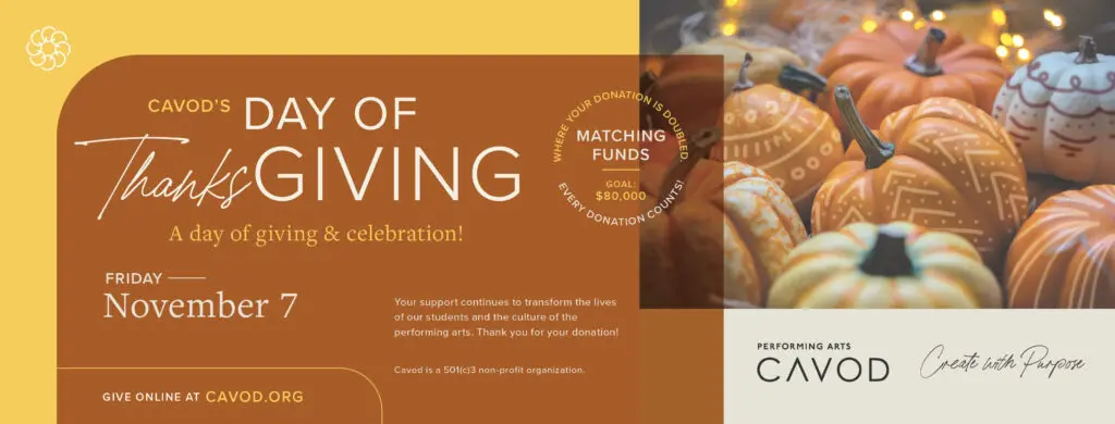 An opportunity to invest in the lives of our students. Cavod has been transforming lives and changing the culture of the arts over the years. With your help, we can continue this mission for years to come! Thank you in advance for your donation.